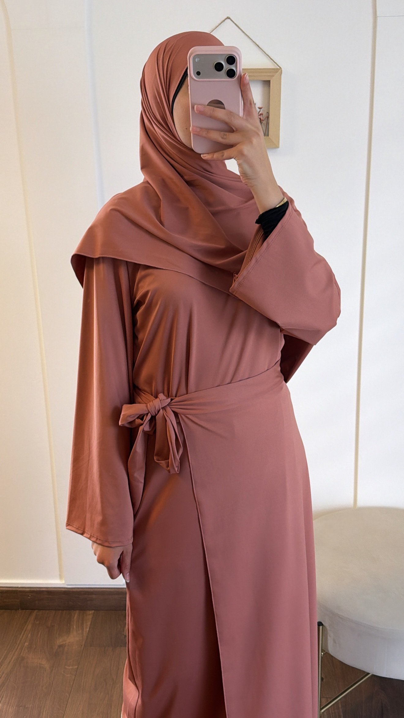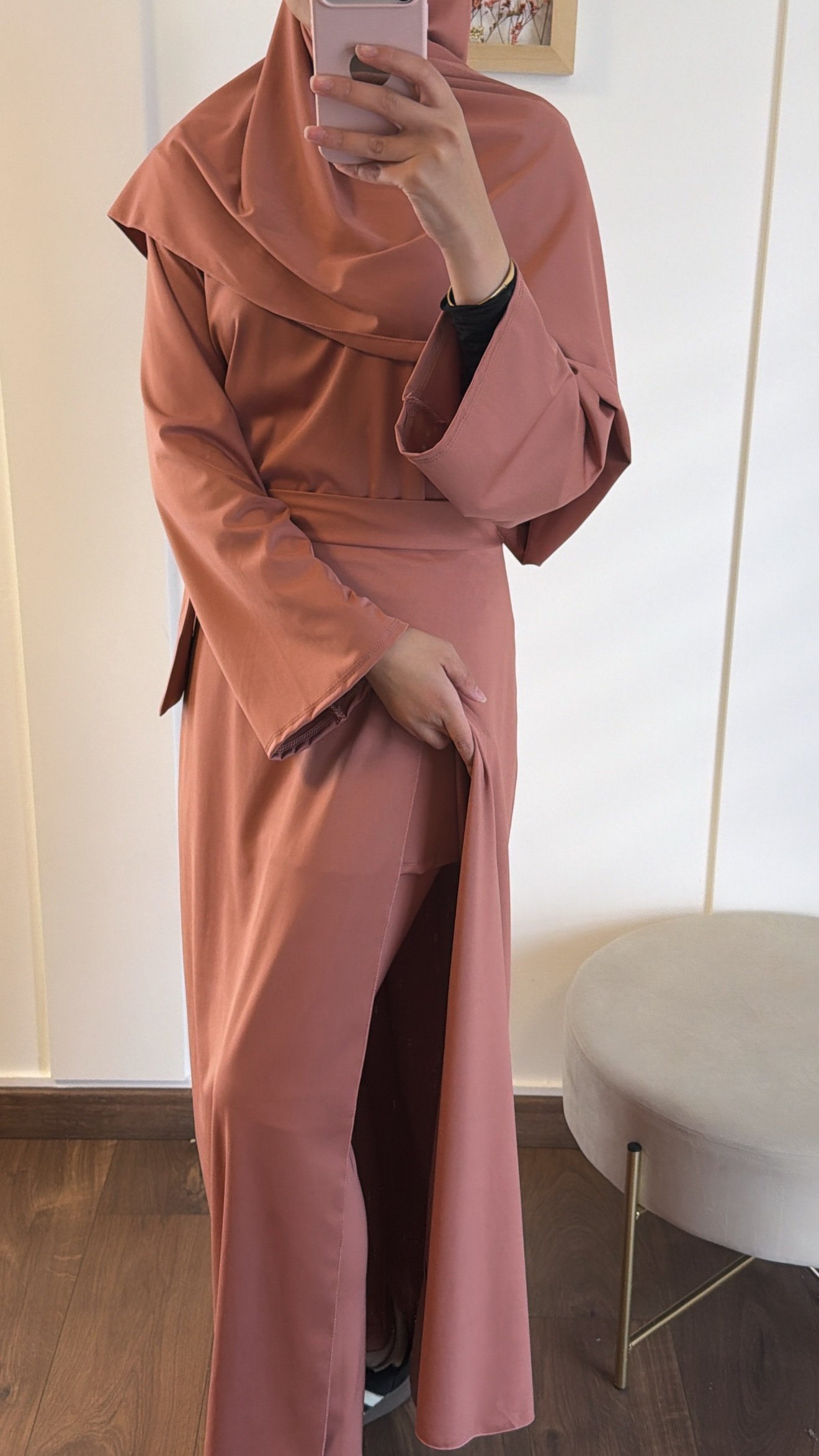 Ensemble burkini complet composé d’un hijab, d’une tunique fluide, d’un legging et d’un paréo noué pour une silhouette élégante et modulable. Une tenue à la fois couvrante, confortable et moderne, idéale pour profiter de vos moments en toute sérénité.
