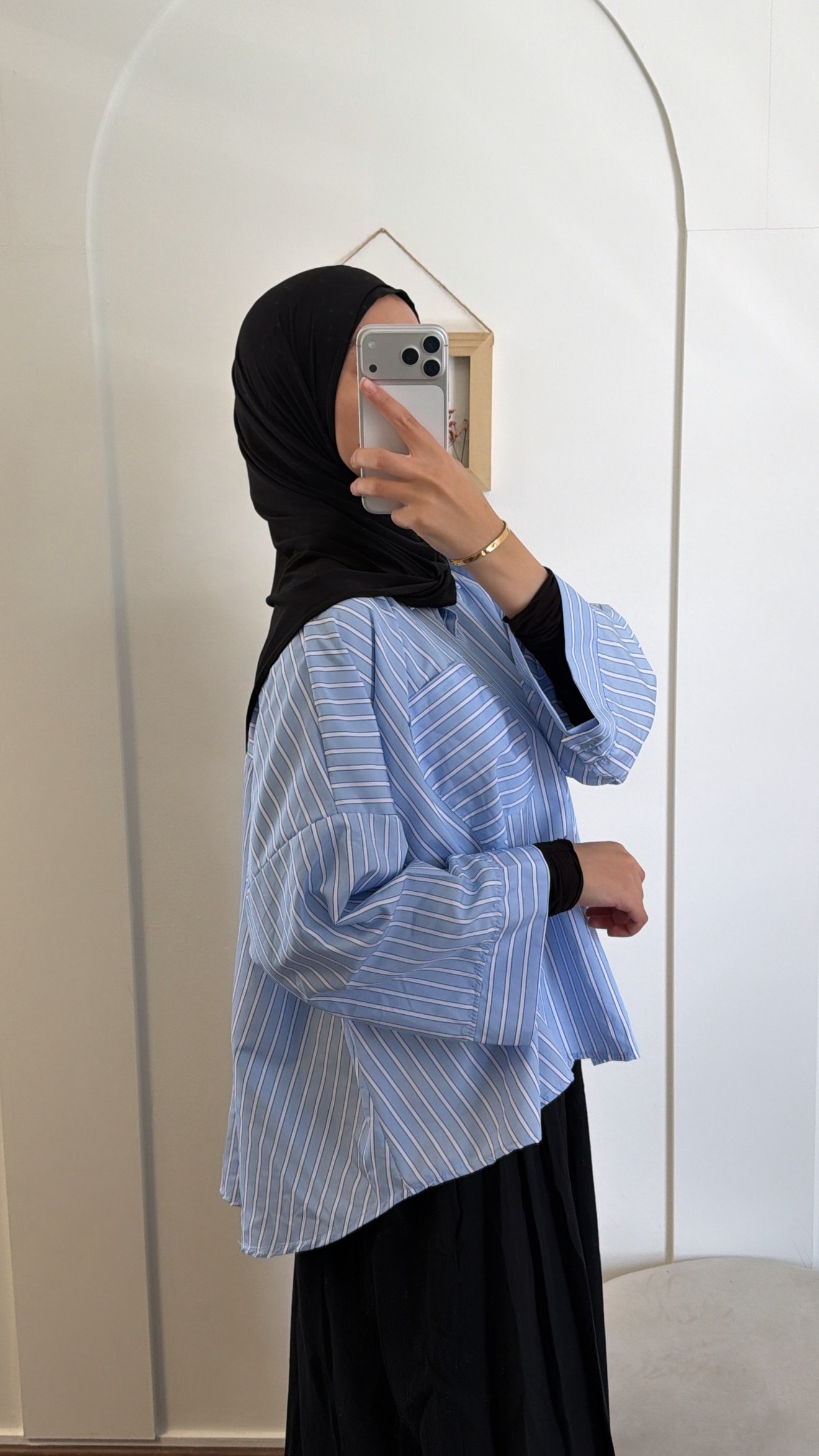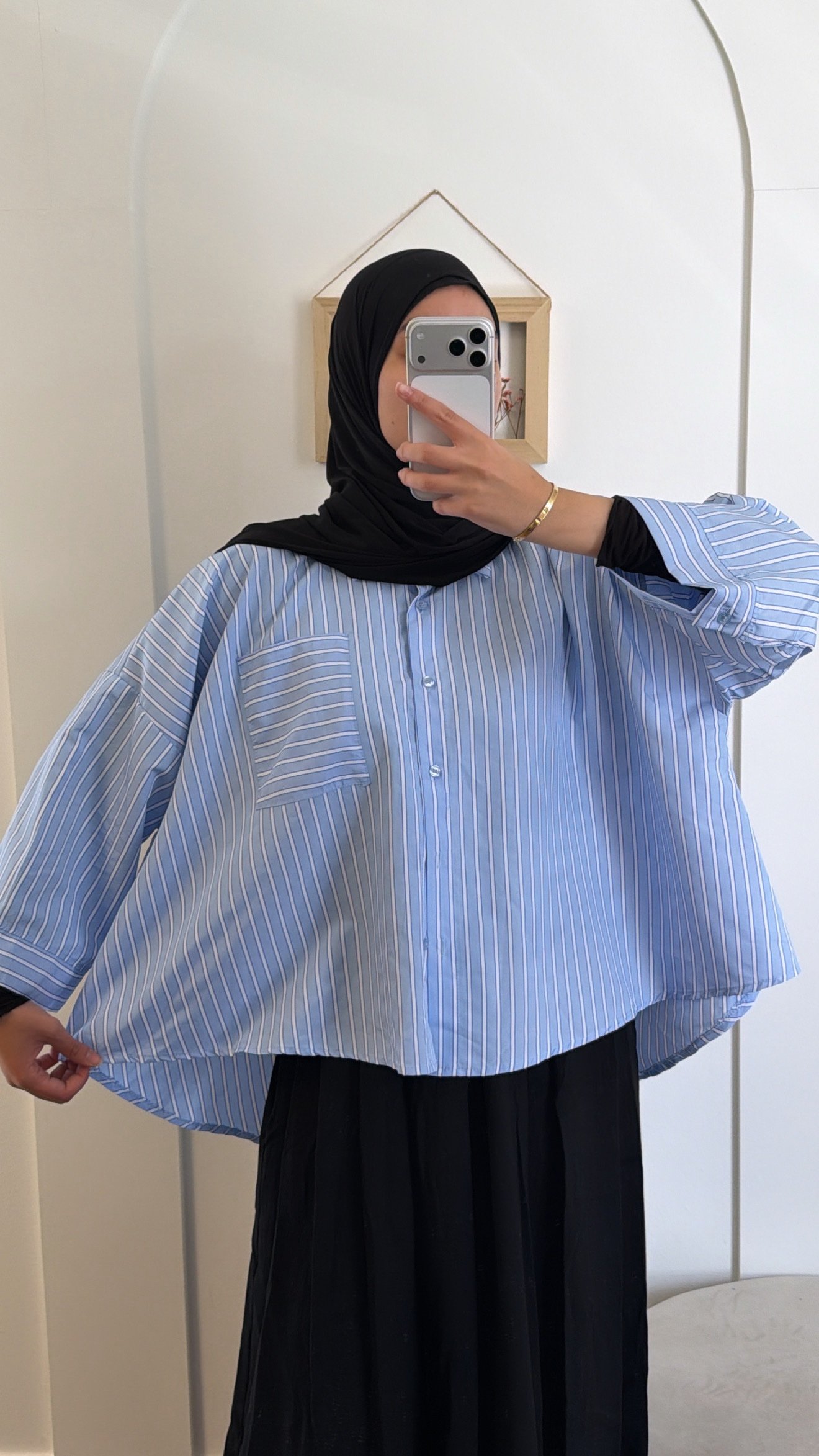 Chemise rayé coupe oversize. Tissu bien frais top pour l’été et n’est pas transparent.