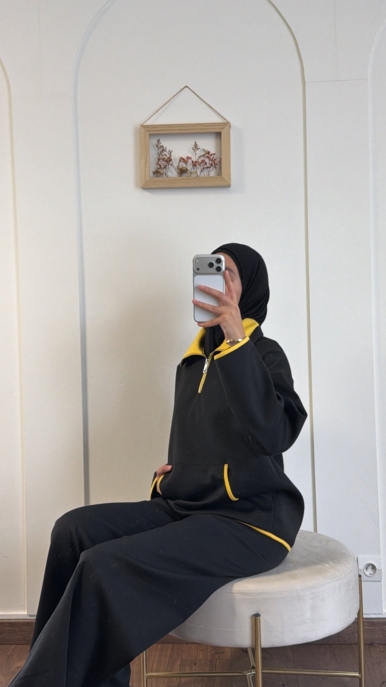 Ensemble 2 pièces confortable et moderne, composé d’un haut col zippé avec poche kangourou et d’un pantalon large fluide.