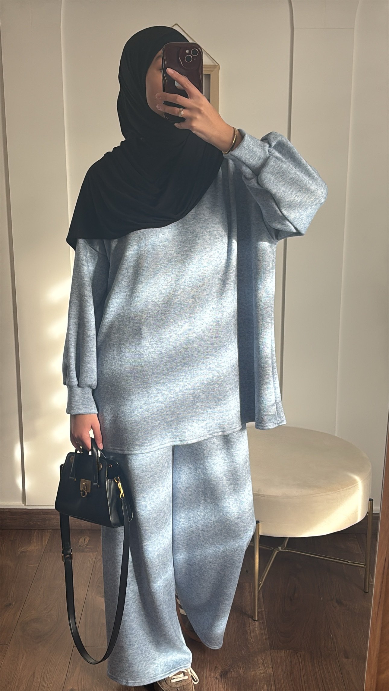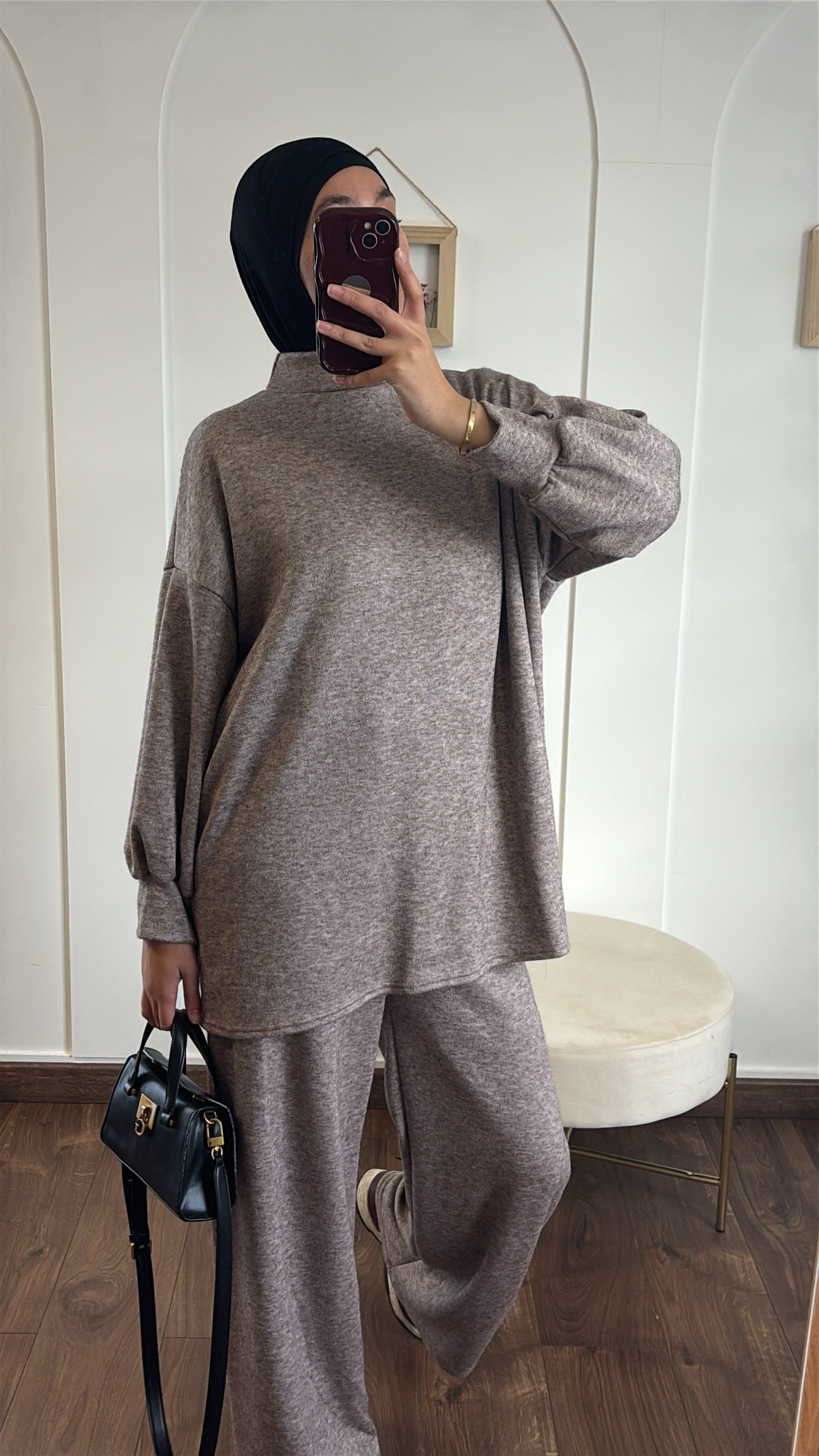 Un ensemble ultra confortable, au tissu duveteux et moelleux, qui rappelle la douceur de la laine sans en avoir l’épaisseur.