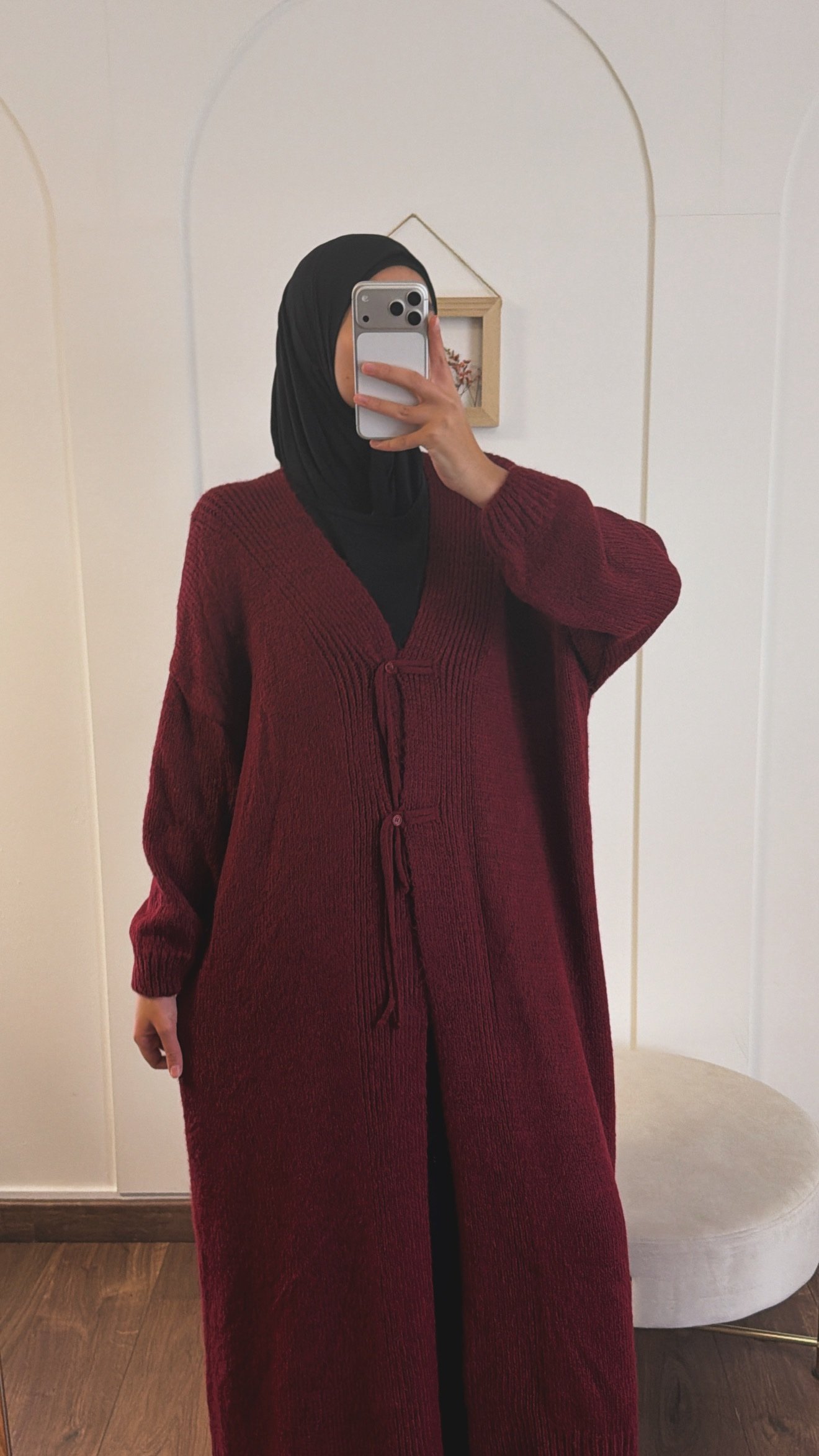 À porter ouvert ou fermé, sur une abaya ou un ensemble simple.