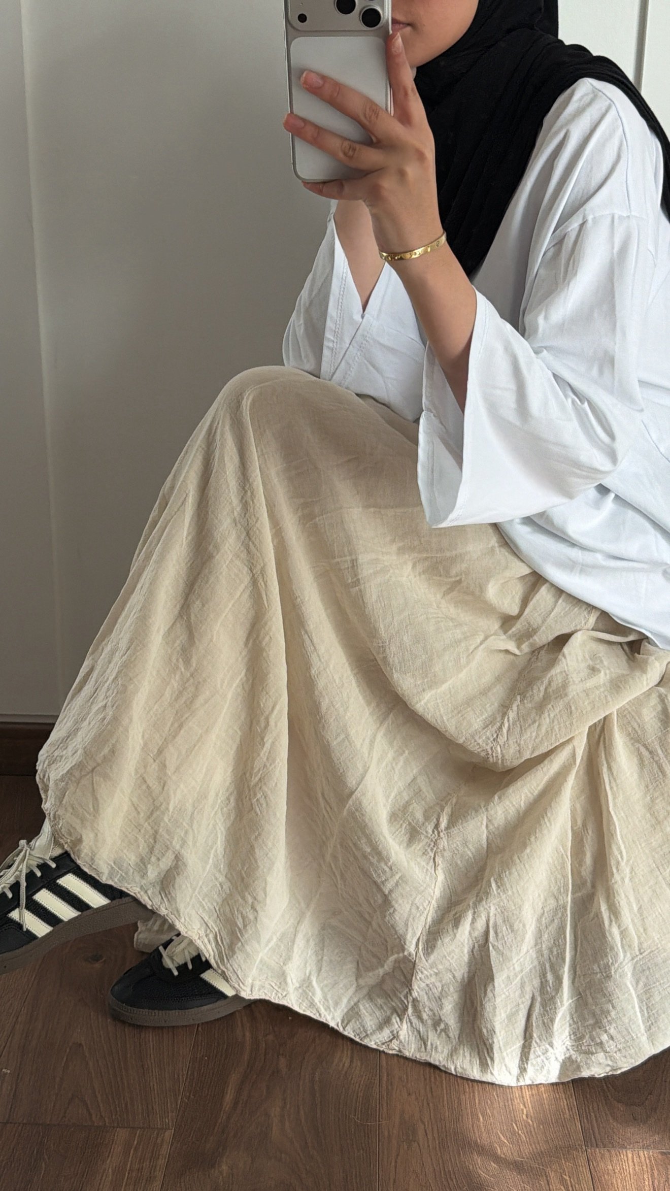 Jupe longue en tissu effet lin, doublée, ultra légère et agréable à porter.