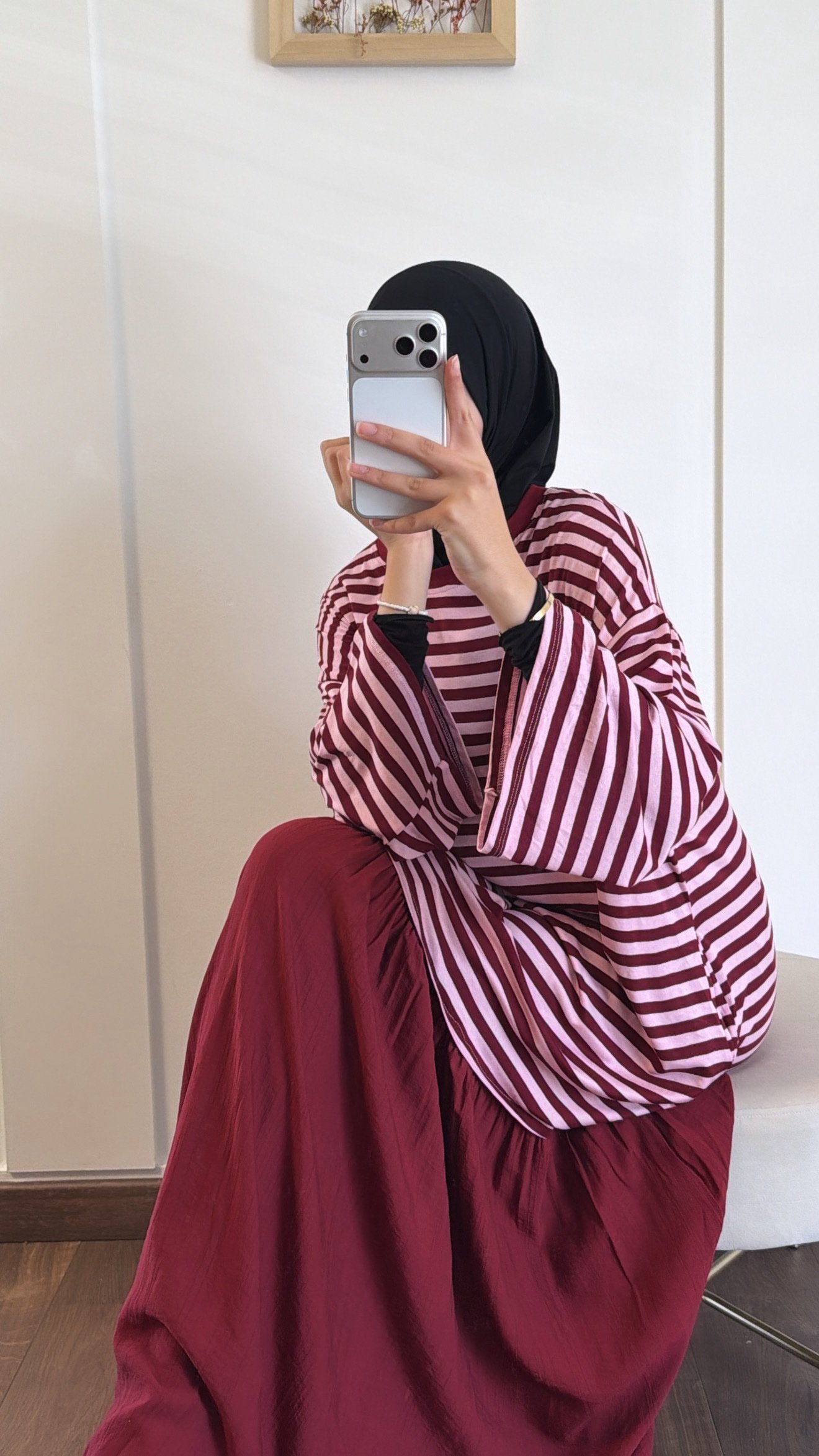 Une robe élégante et confortable avec un haut rayé au style moderne et une jupe fluide unie pour un rendu harmonieux. Sa coupe ample et ses manches larges offrent une aisance parfaite au quotidien.