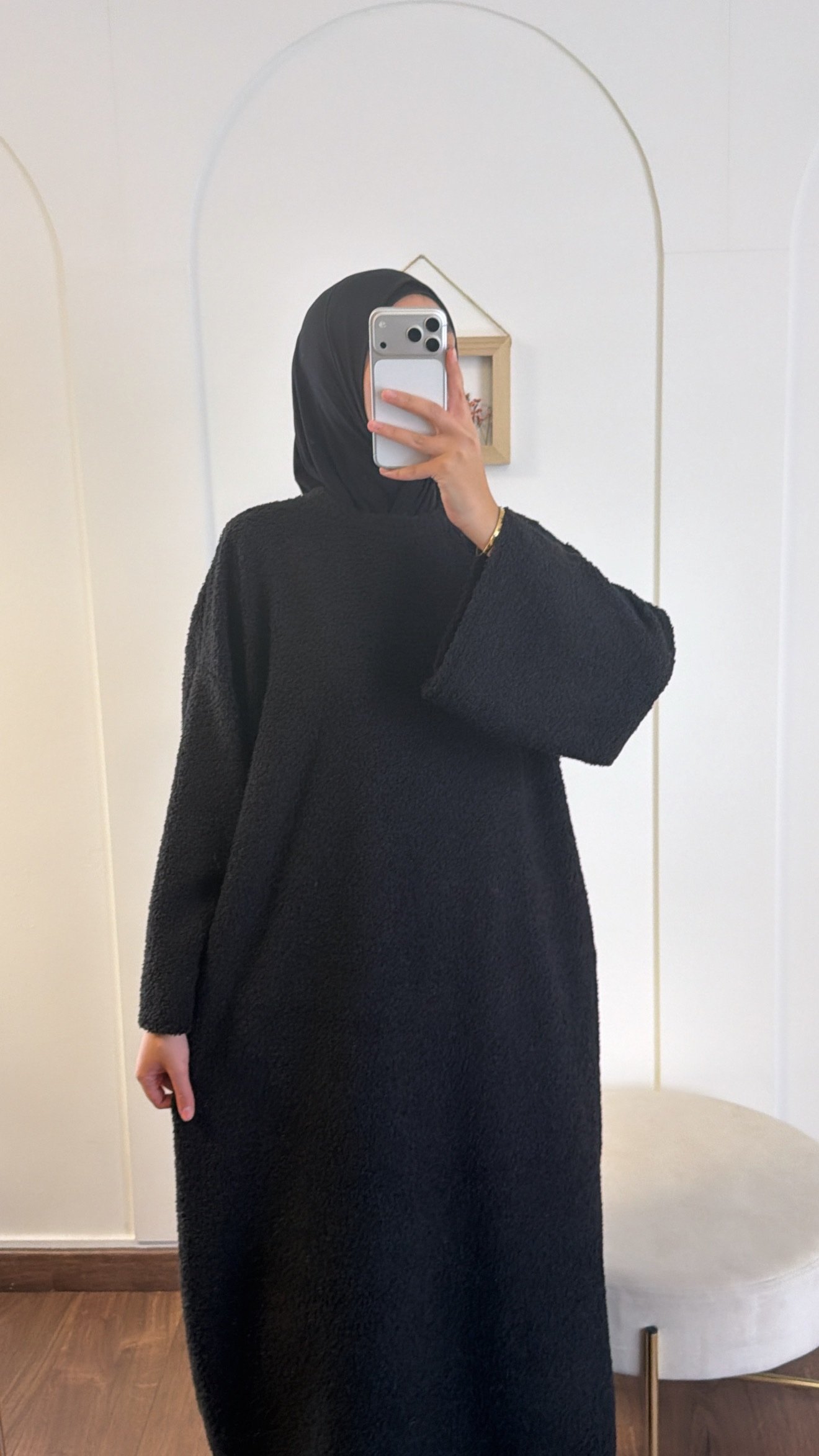 Abaya Yara en tissu texturé tout doux, coupe large et confortable.