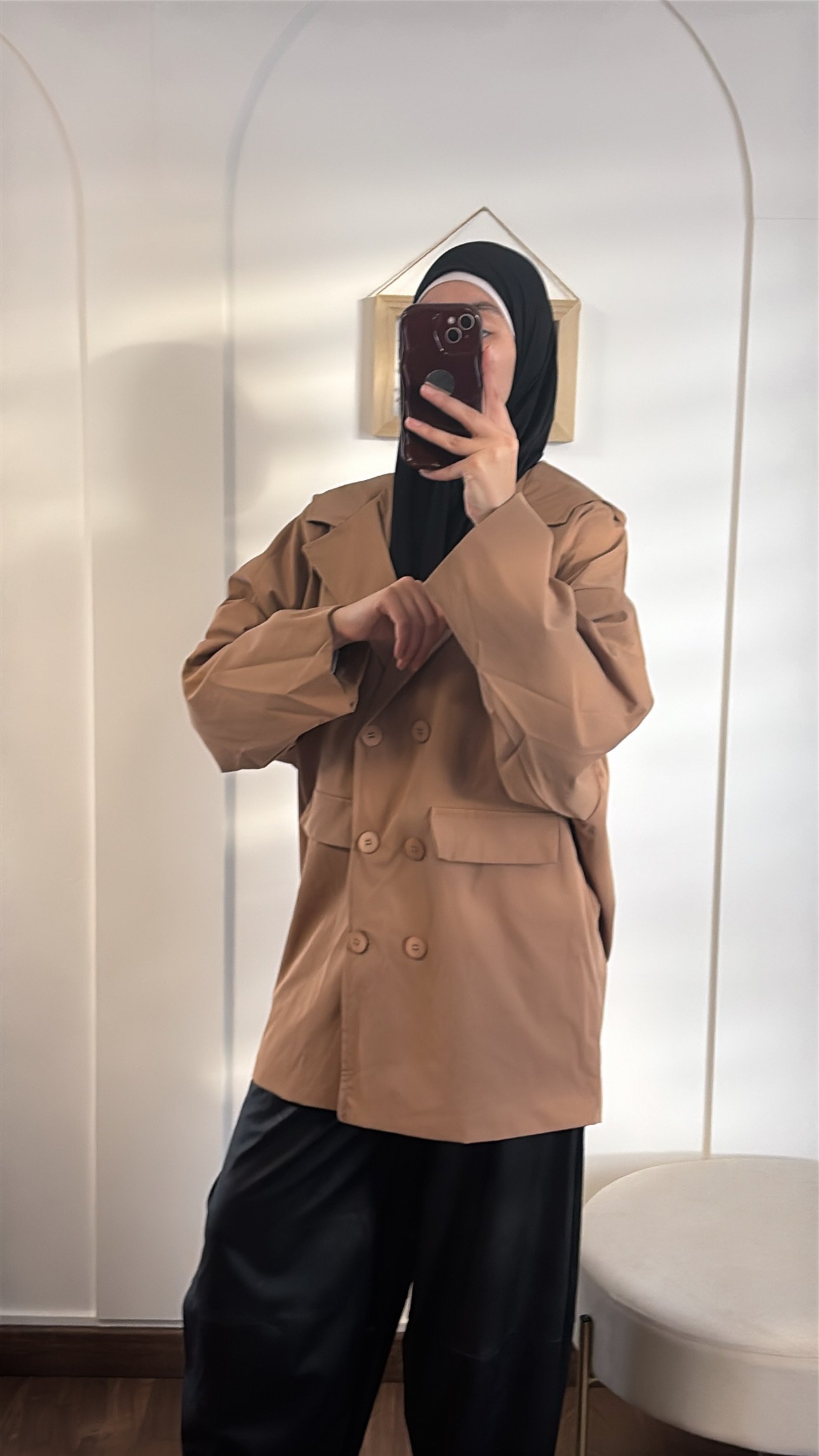 Avec sa coupe oversize et son coloris camel intemporel, il s’adapte facilement à toutes vos tenues, du look casual au plus habillé.